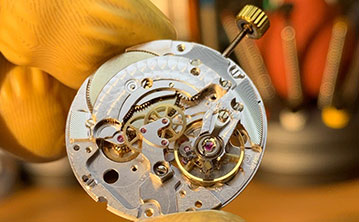 手表经常出现进水起雾现象并且长年不保养就会逐渐的导致机芯内部生锈,生锈后不及时除锈,就会损伤机芯内部零配件,最终导致手表停走。为了避免增加维修的成本建议尽快到维修中心进行清洗除锈,重新注油。机芯基础清洗保养服务:①检查机芯功能、进行机芯拆解;②根据机芯生锈状况进行清洗、加油、组装、并调校精准性;③更换老化的防水圈,视乎机芯状况更换必要的机芯部件。
